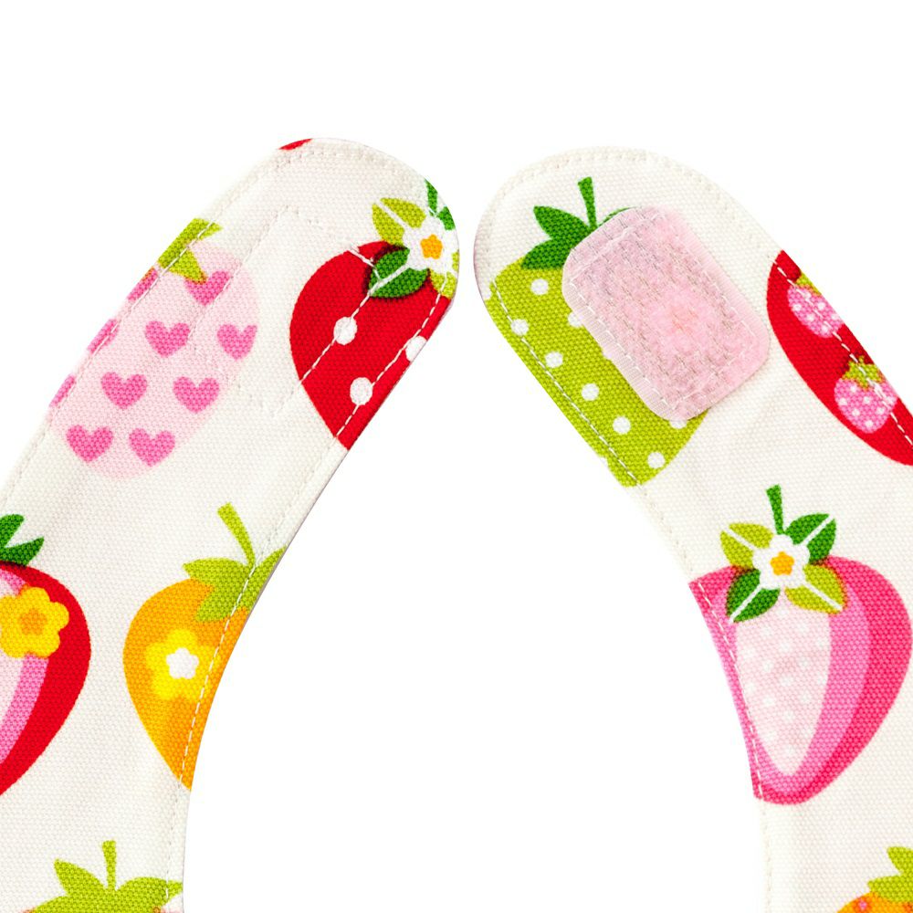 面ファスナー仕様なので、着脱が簡単。動き回る赤ちゃんにもサッとワンタッチで付けることができ、よだれかけを頻繁に交換する際にも便利です。