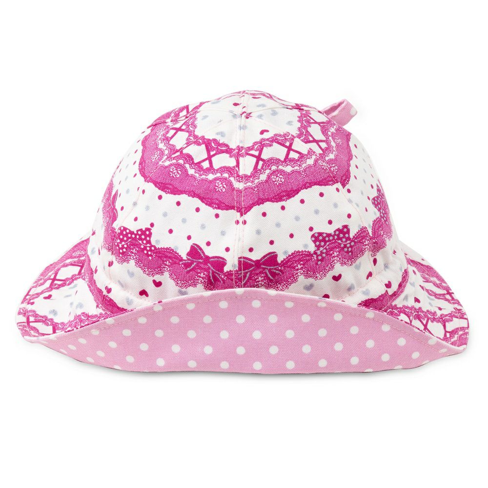 ベビー帽子 ハット リボンとレース模様でプリティcute(ホワイト)