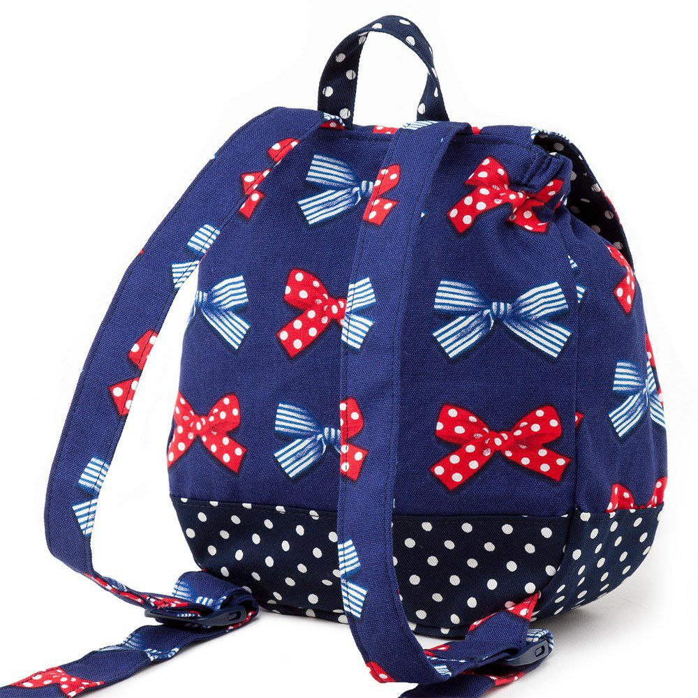 ベビーリュック ポルカドットとストライプのフレンチリボン(ネイビー)