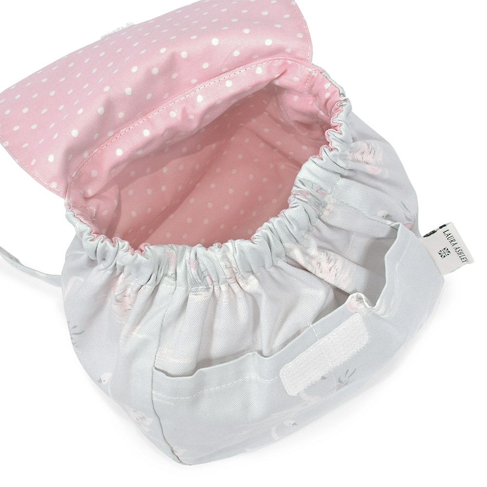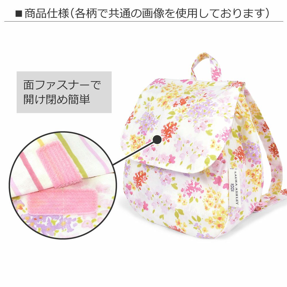 本体生地はもちろん、裏生地までLAURA ASHLEYの生地を使用した、1歳の赤ちゃんでも背負えるリュック。ころんとした丸いフォルムは、赤ちゃんをさらに可愛く見せます。