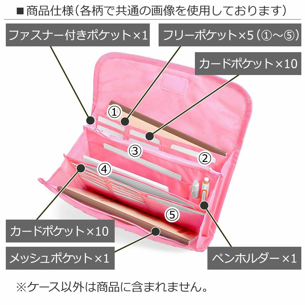 貴重品を収納できるファスナー付きポケットやカードポケット、ペンホルダー、中身が確認できるメッシュポケットなど小分けに便利なポケットが満載です。