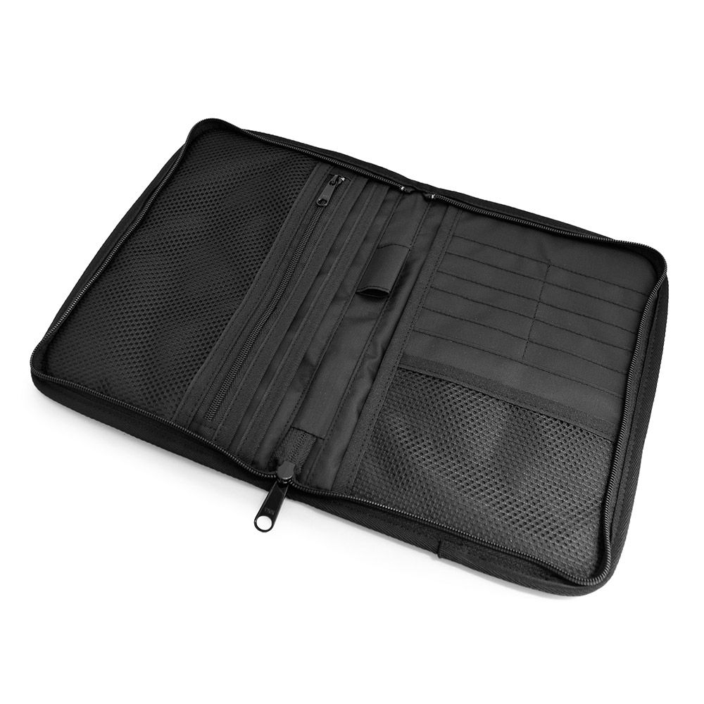 貴重品を収納できるファスナー付きポケットやカードポケット、ペンホルダー、中身が確認できるメッシュポケットなど小分けに便利なポケットが満載です。