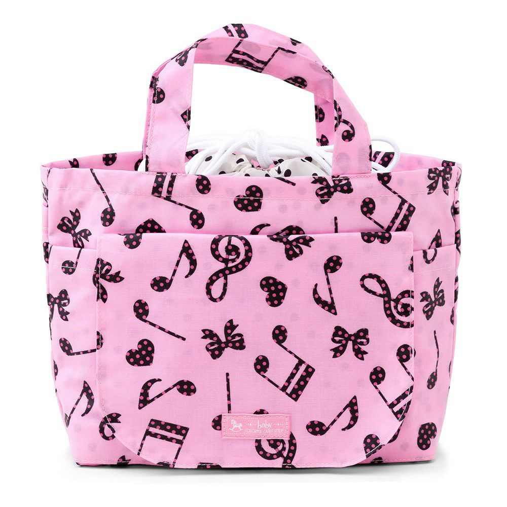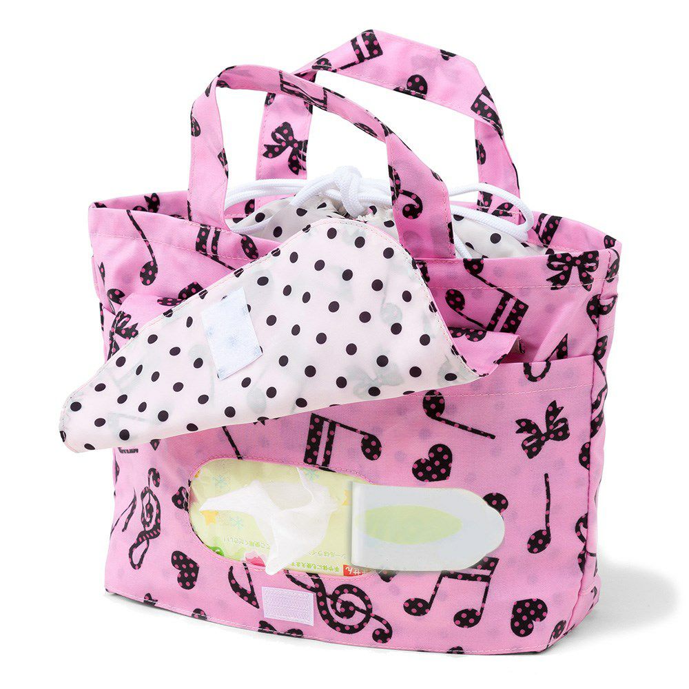 おむつポーチ・M(巾着トートタイプ) 水玉音符のハーモニー(ピンク)
