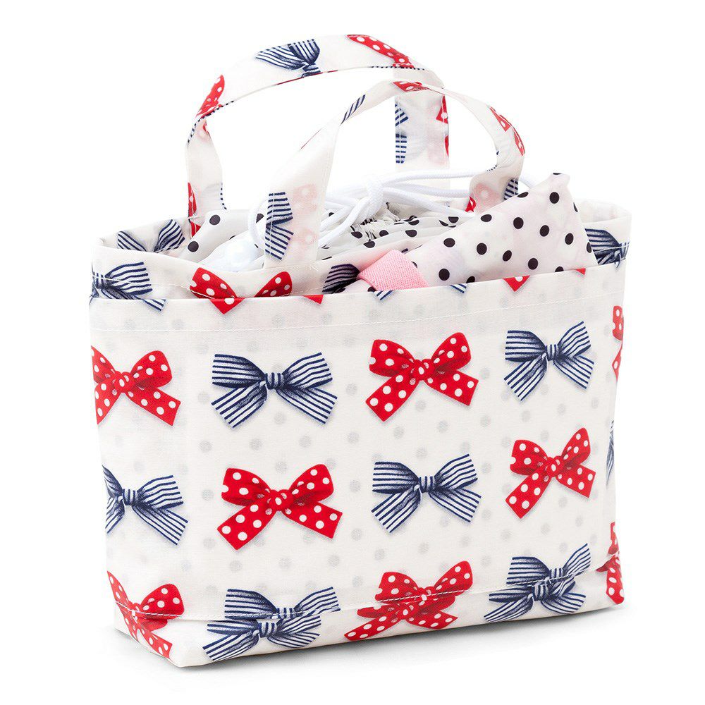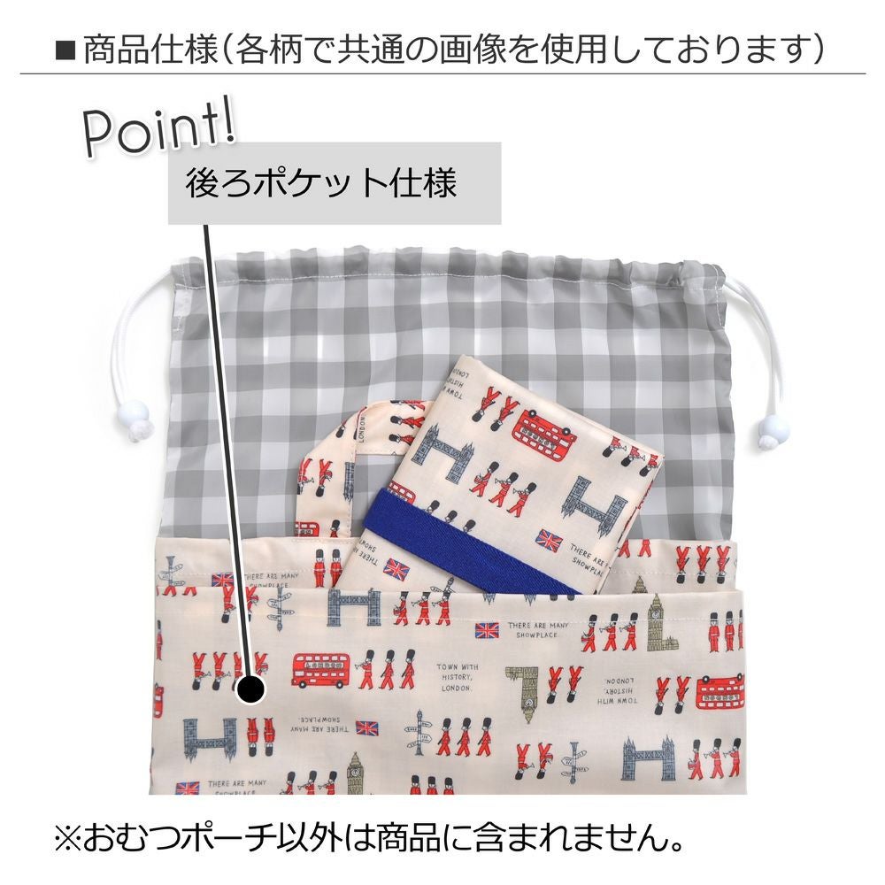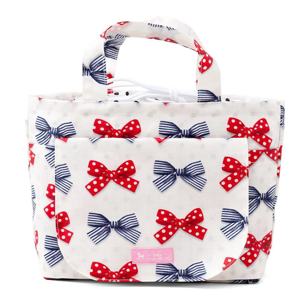 一見オシャレな巾着型トートバッグで、実は便利なおむつポーチ。もちろん、巾着トートとしてお着替えを入れたり、その他の用途にも役立ちます。