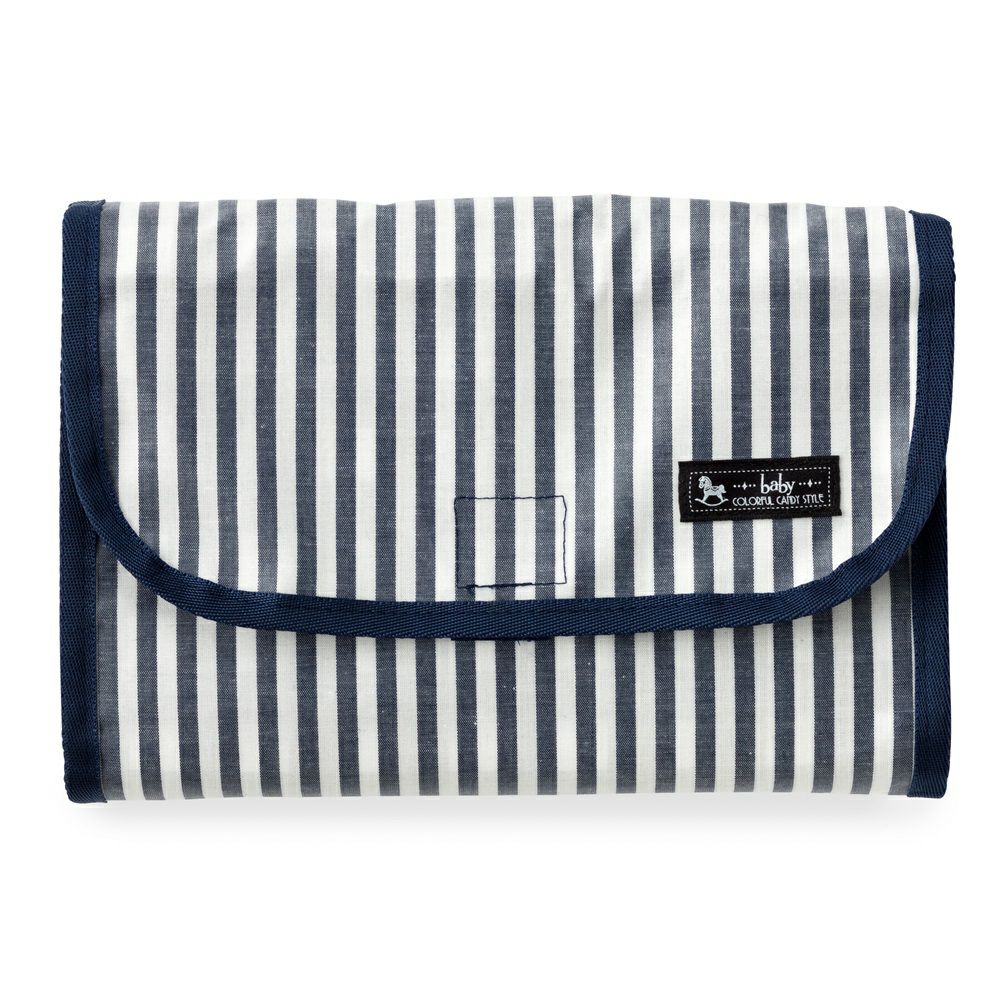 おむつポーチ・S(クラッチタイプ) ベーシックストライプ(綿100%)・紺