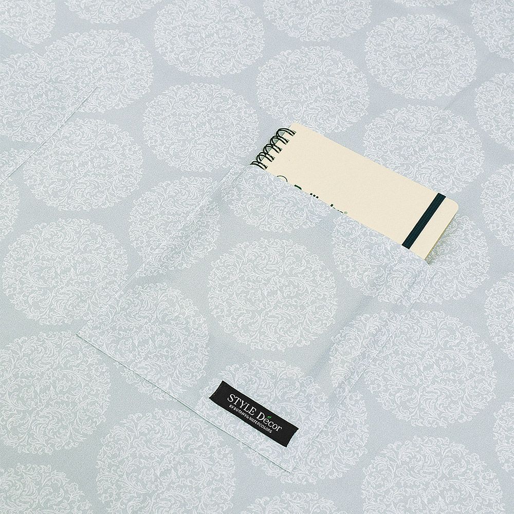 キッチン仕事やお掃除の時もモチベーションが上がるような綺麗な柄のミディアム丈エプロンです。
