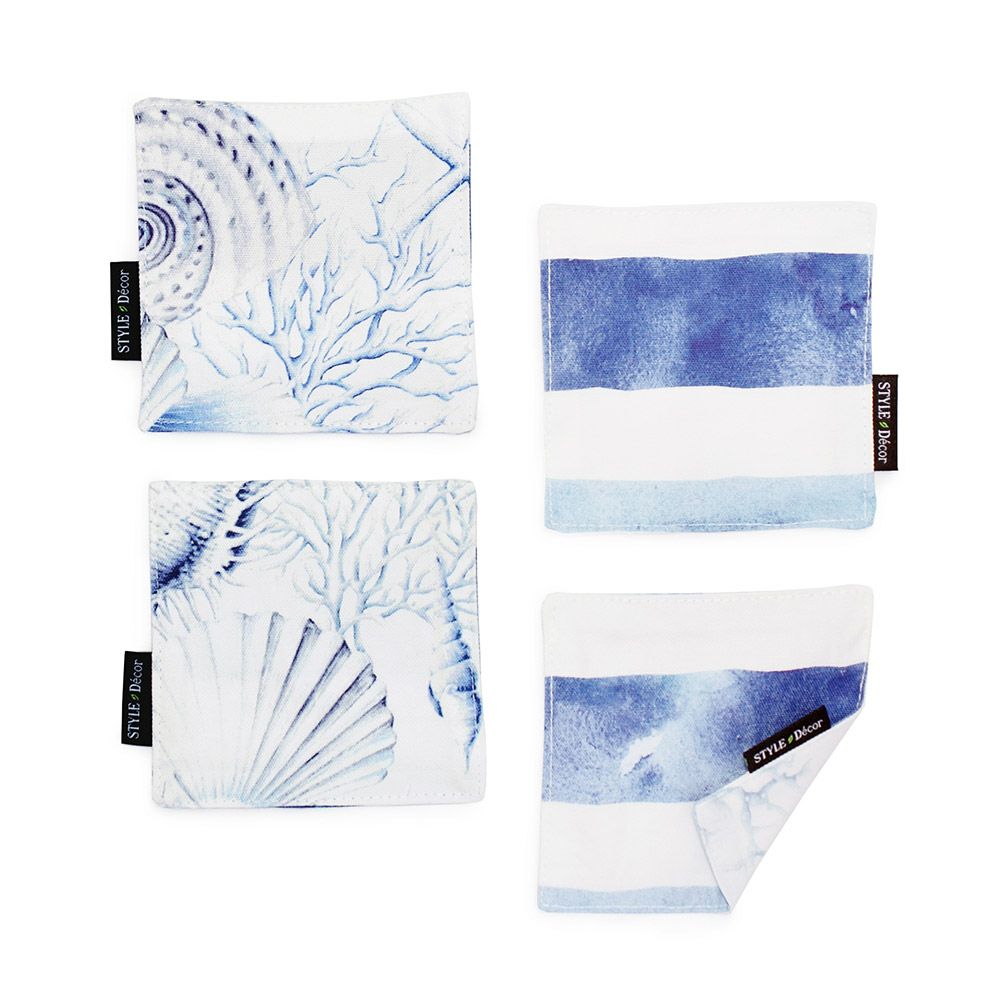 コースター 4枚セット リバーシブルタイプ 綿100% ブルーホライズン