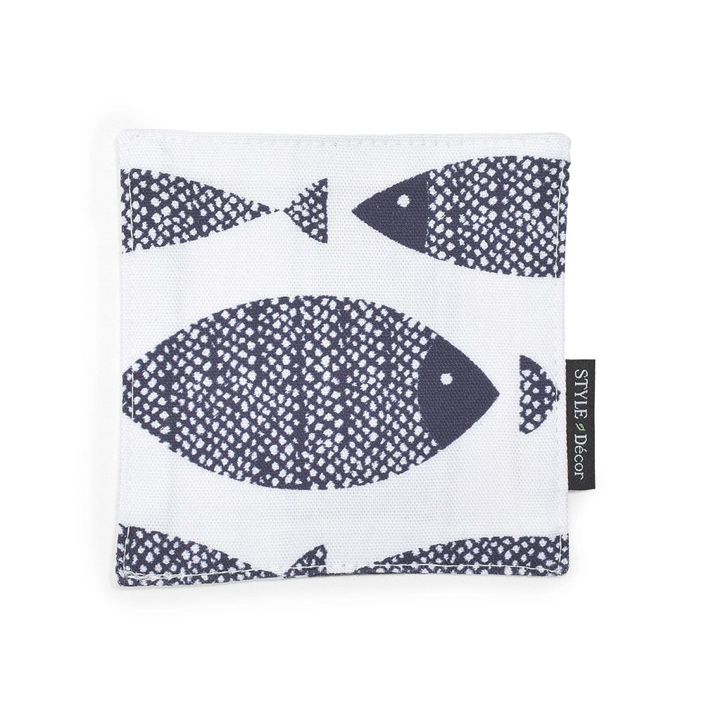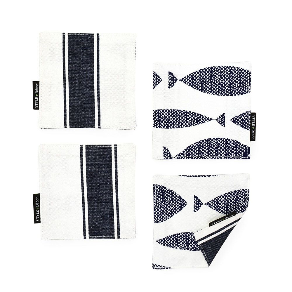 コースター 4枚セット リバーシブルタイプ 綿100% ブルーフィッシュ