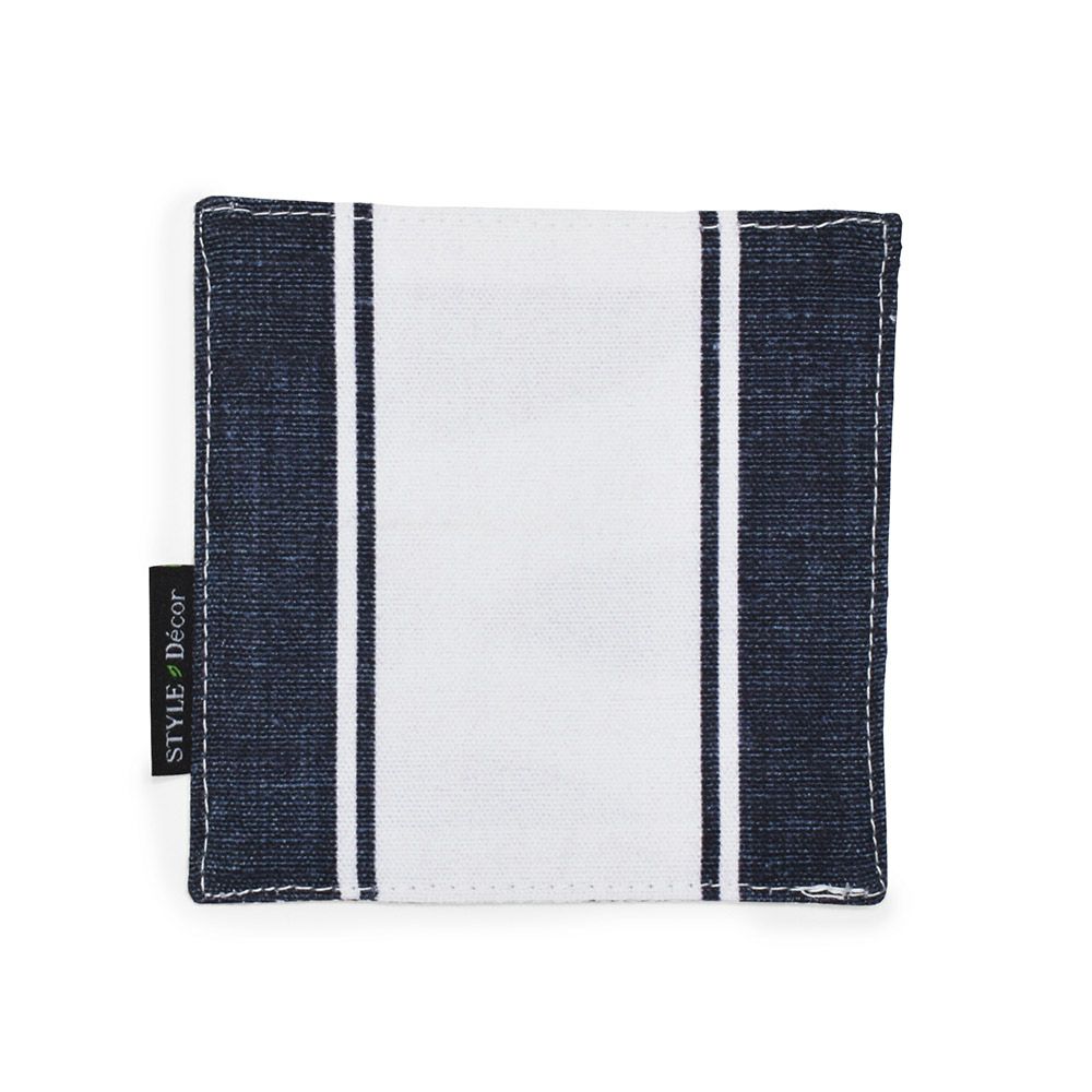 リバーシブル仕様なので、表柄と裏柄のどちらも楽しめます。毎日の食卓のイメージや気分に合わせてコーディネートができて、ダイニングテーブルのアクセント使いとしても活躍します。ファブリック2枚仕立てのコースターなので、グラスの水滴もたちまち吸収。
