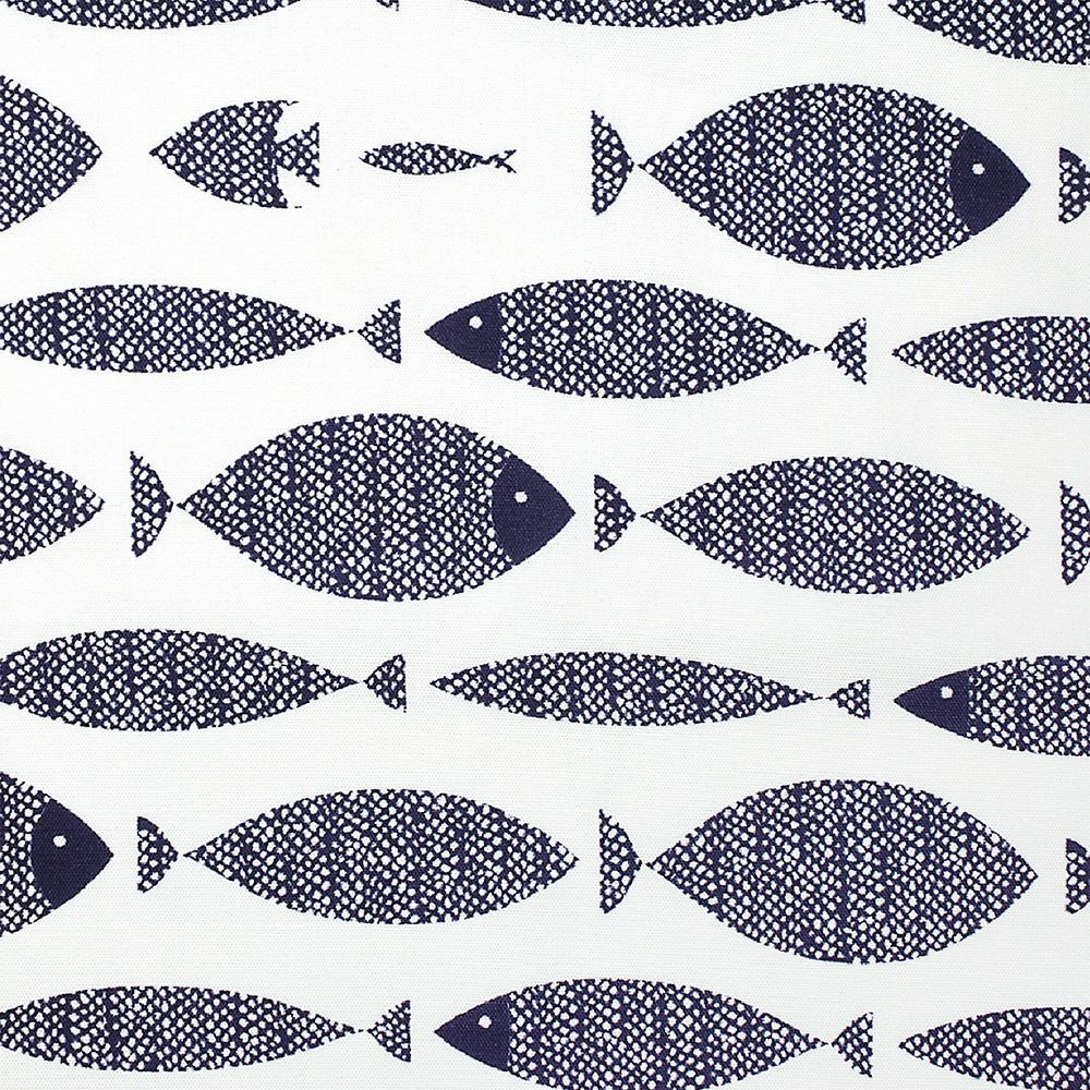 スカンジナビアの港町からインスピレーションを得た、大人可愛い魚たち。遠目に見ると幾何学模様のようにスタイリッシュ、近くで見ると愛嬌あふれる、インディゴ・ブルーの魚たち。