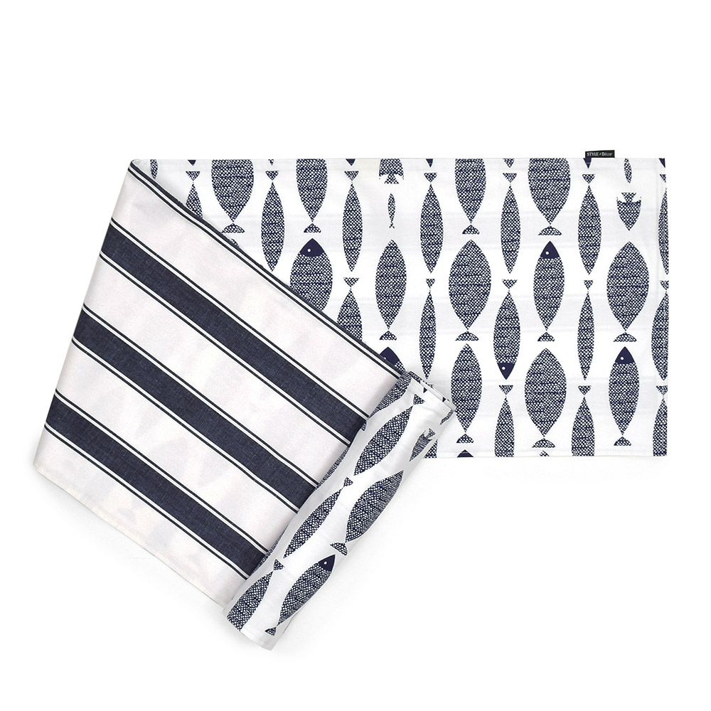 テーブルランナー・テーブルセンター (30cm×180cm) リバーシブルタイプ 綿100% ブルーフィッシュ