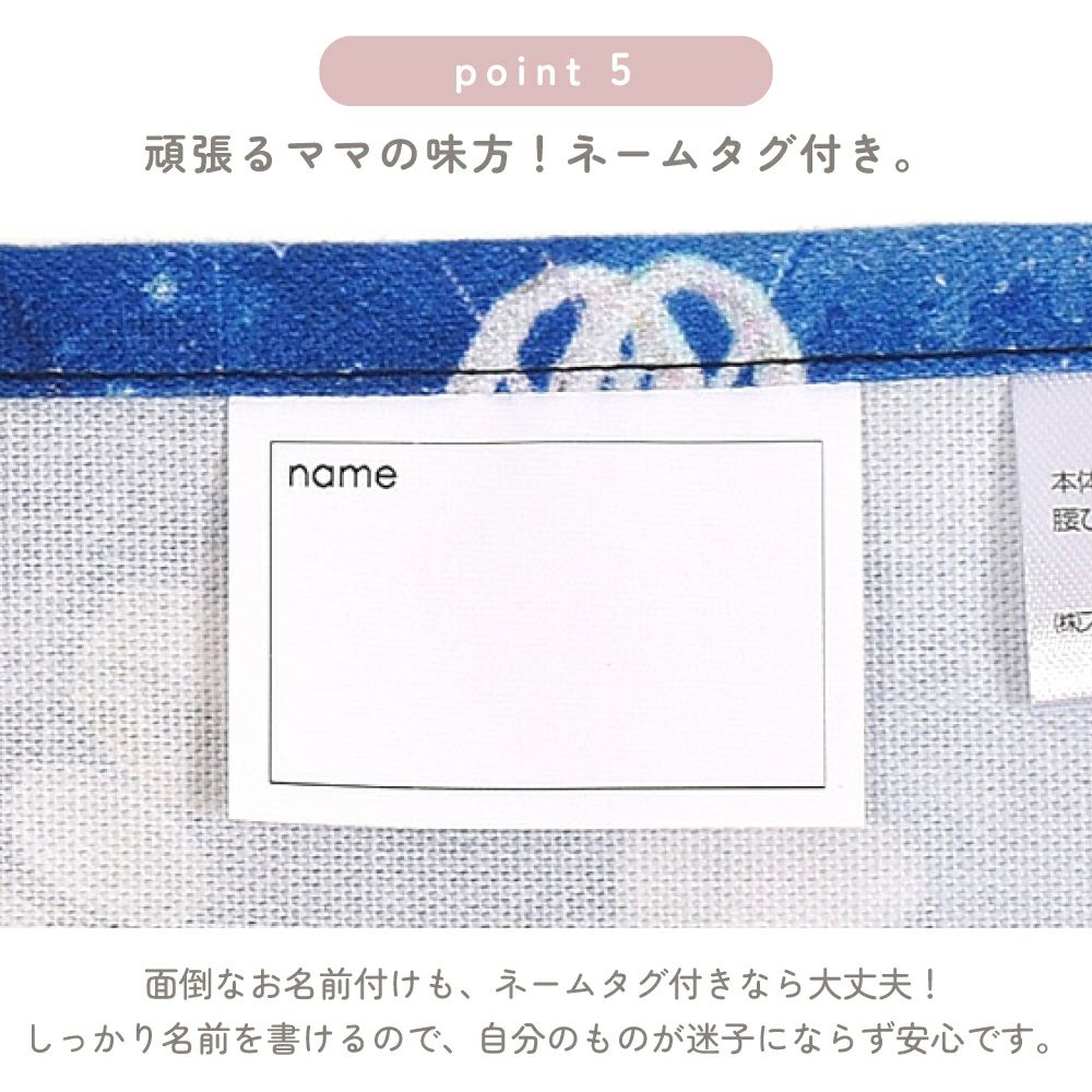左脇の内側には名前が書けるネームタグ付きなので「自分の物」と認識しやすいですね。