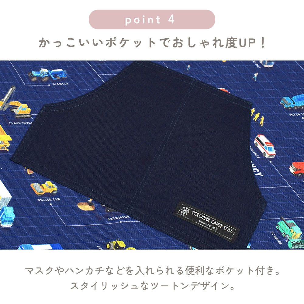無地と柄生地が素敵なツートンデザイン。二つに分かれた便利なフロントポケット付きです。