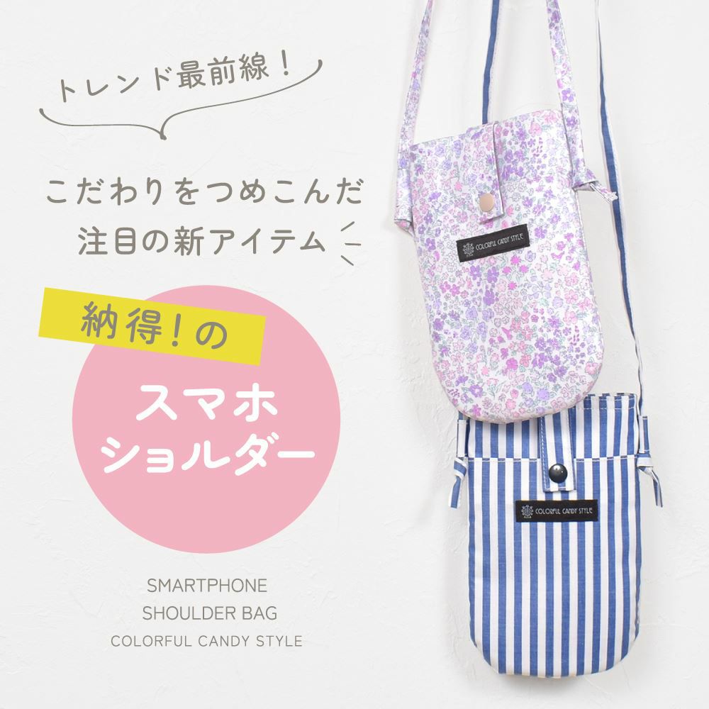 スマホショルダー ベーシックストライプ・青