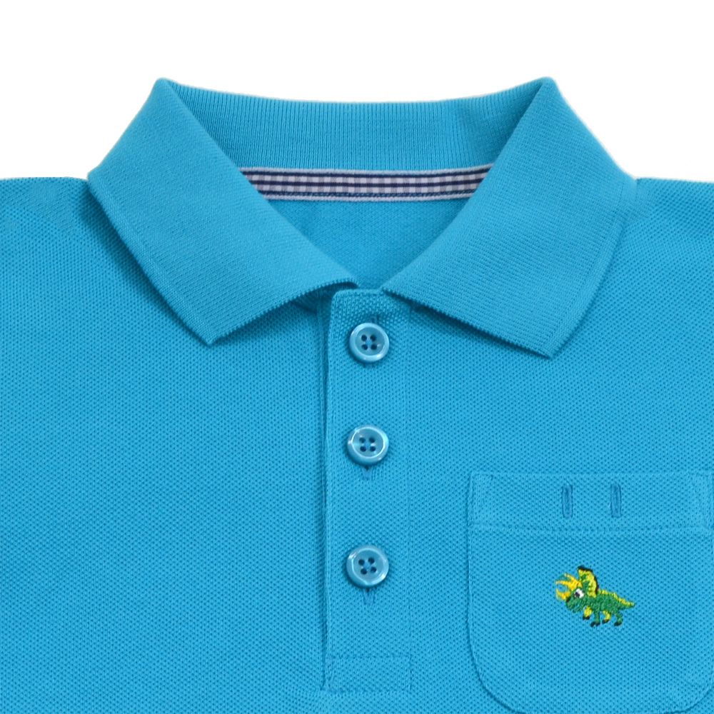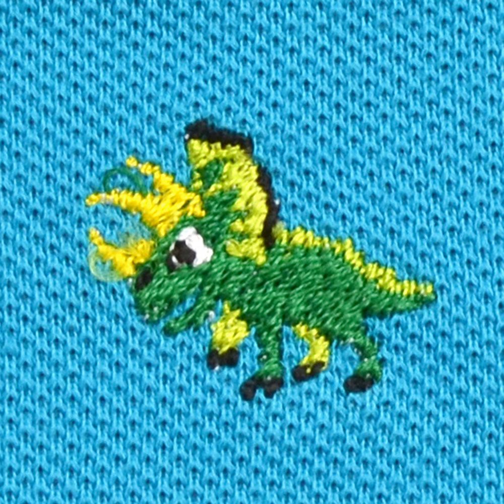 ポロシャツ(半袖) ターコイズ×トリケラトプス(刺繍入り)