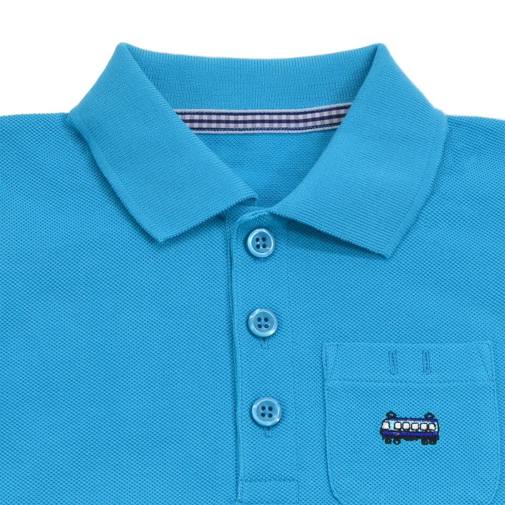 ポロシャツ(半袖) ターコイズ×特急列車(刺繍入り)