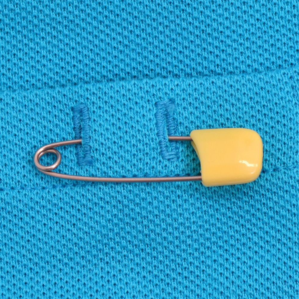 左胸のポケット上部は、名札が付けやすいピンホール仕様。名札などのひっぱりによるピン穴の拡大を防ぎ、生地をいためません。