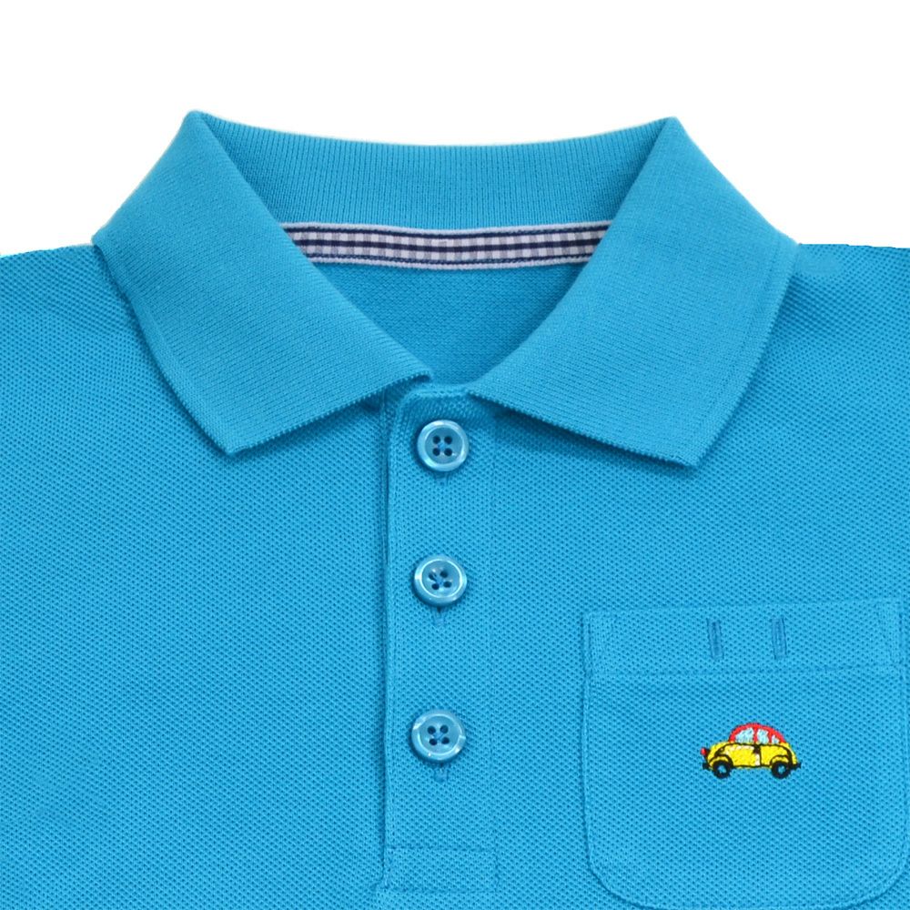 ポロシャツ(半袖) ターコイズ×自動車(刺繍入り)