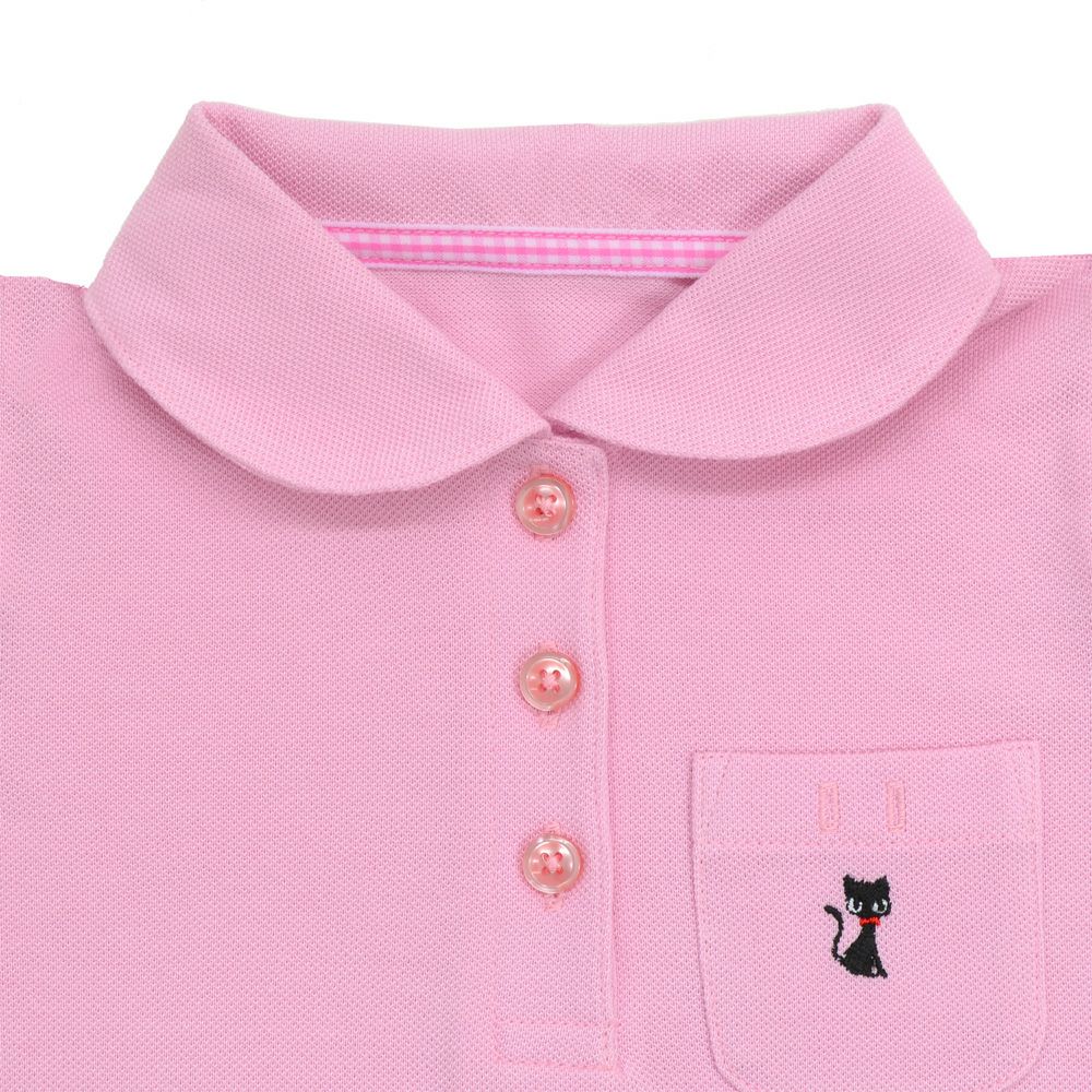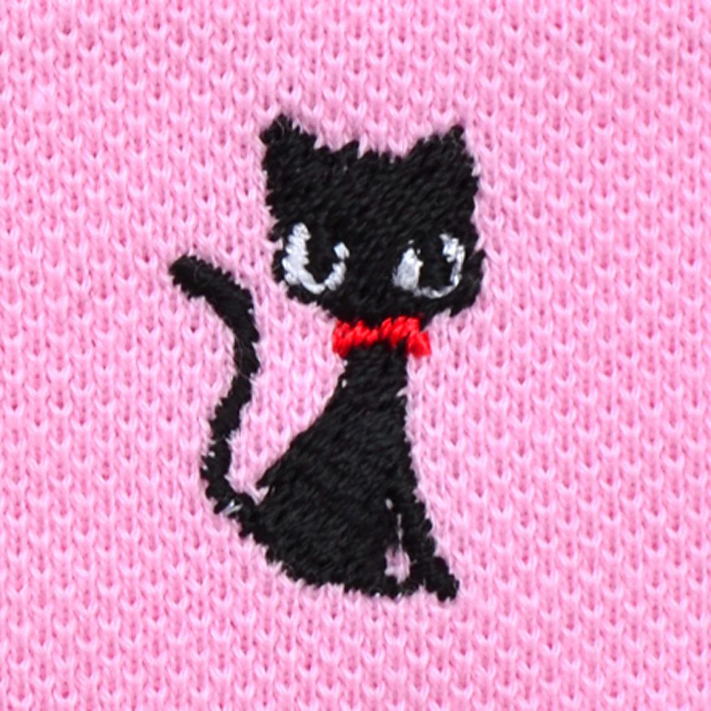 ポロシャツ(半袖) ピンク×黒猫(刺繍入り)