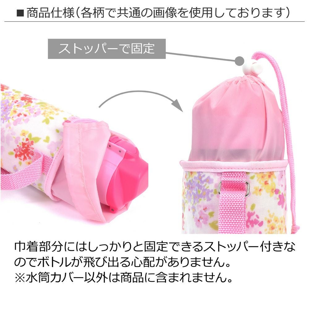 LAURA ASHLEYの生地を使用した水筒カバー。カバー入り口にはしっかり固定できるストッパー付き。開け閉めも簡単です。