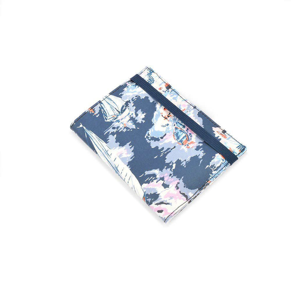 表地は撥水加工のラミネート素材なので汚れに強く、お手入れも簡単。半分に折りたたんだ際は、一体型のゴムで開かないように留められるので、接触面を守ることができます。