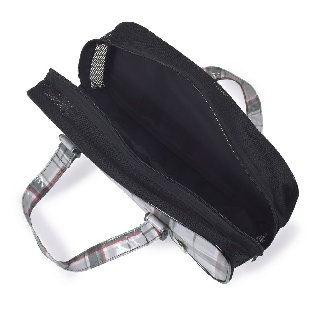 両開きファスナー仕様で開け閉めもスムーズ。ゆったりサイズ設計なので中身も出し入れしやすいです。プライバシーに配慮し、ネームタグは内側に。