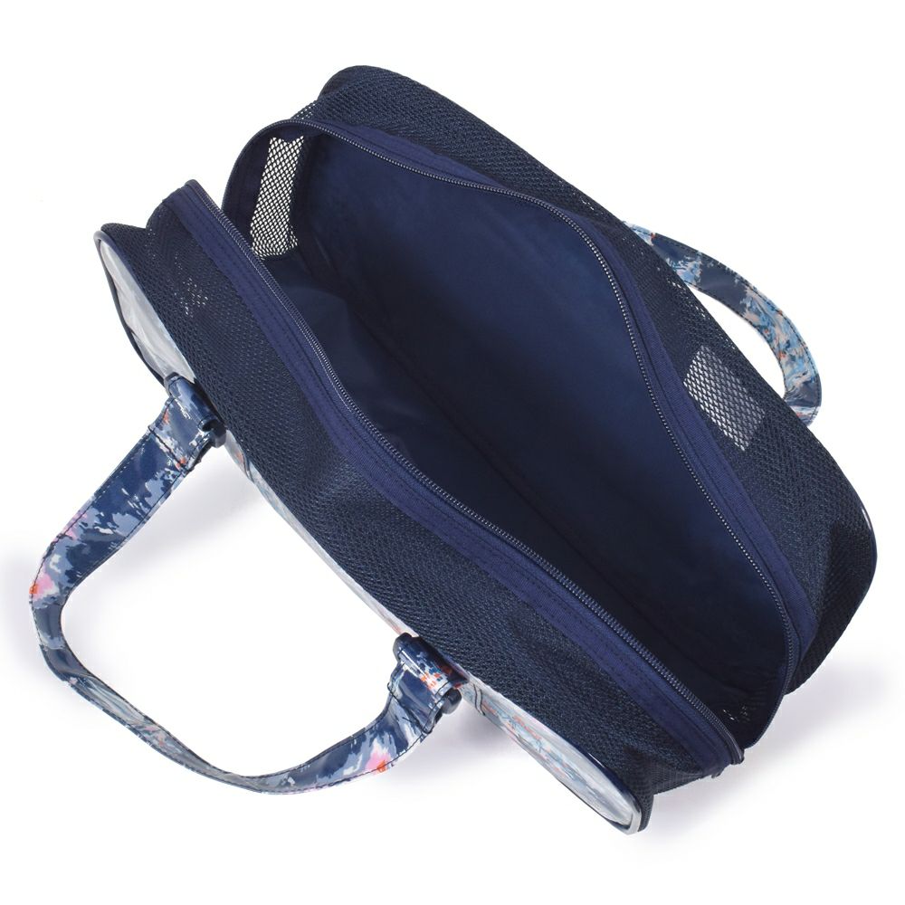 両開きファスナー仕様で開け閉めもスムーズ。ゆったりサイズ設計なので中身も出し入れしやすいです。プライバシーに配慮し、ネームタグは内側に。