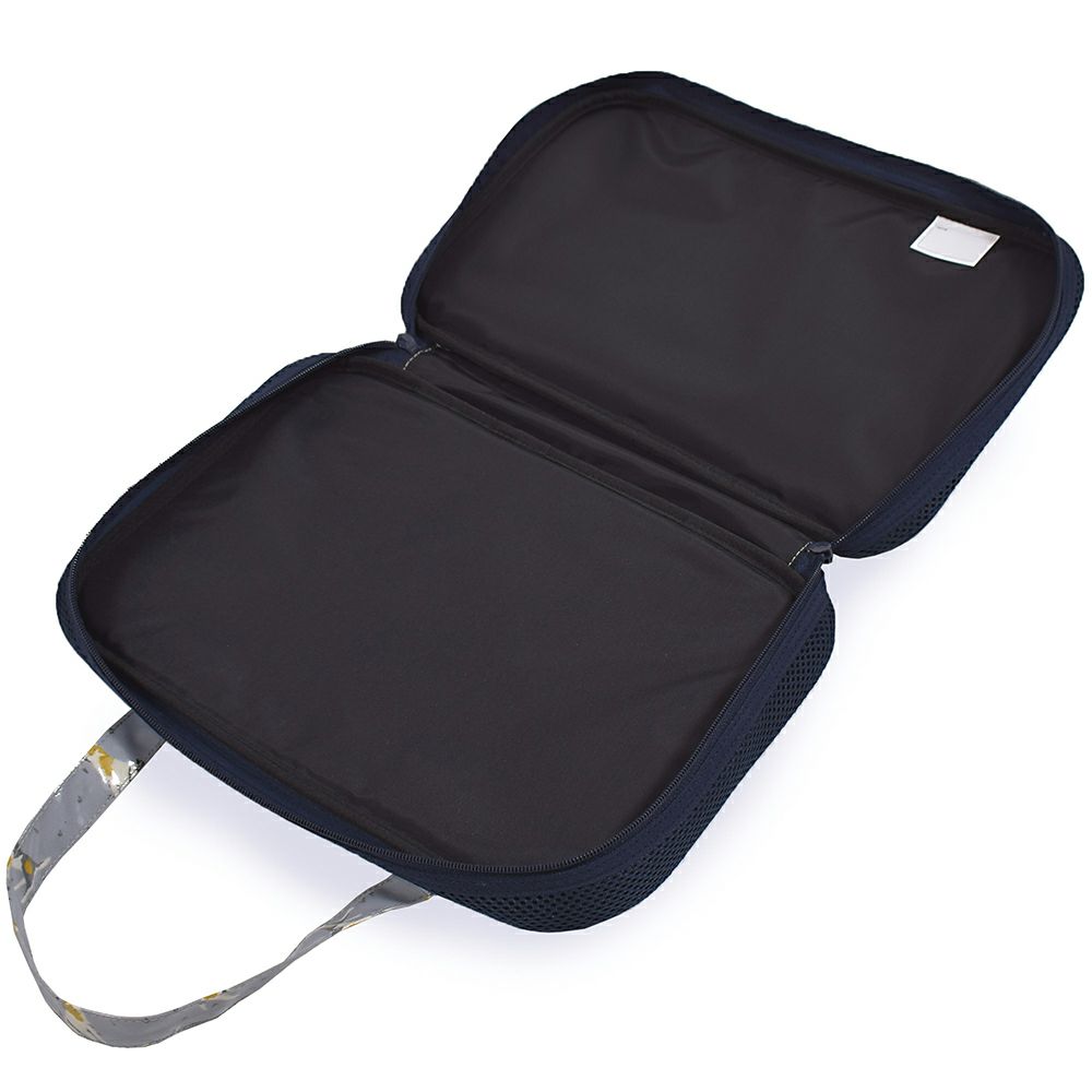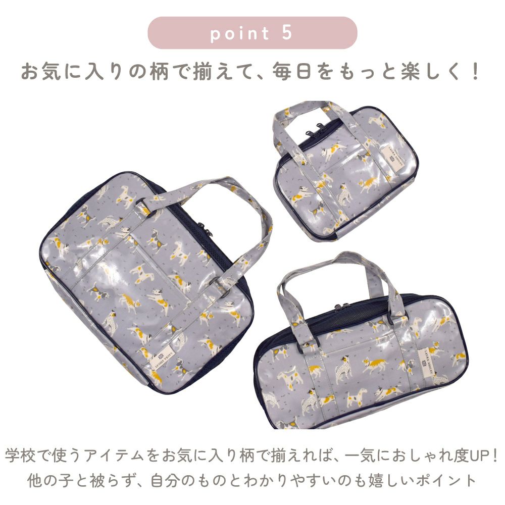 教科書類や半紙もたくさん入るゆったりサイズ。本体はスポンジ芯入りで中身を衝撃から守ってくれます。プライバシーに配慮し、ネームタグは内側に。