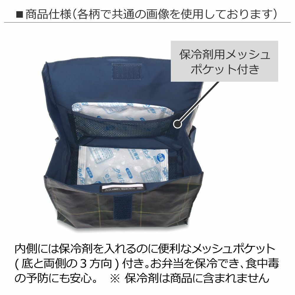 ※ランチバッグ本体には保冷効果はありません。お弁当は必ず中身を冷ましてから、保冷剤と一緒にご使用ください。(温かいままで入れると効果はありません。)