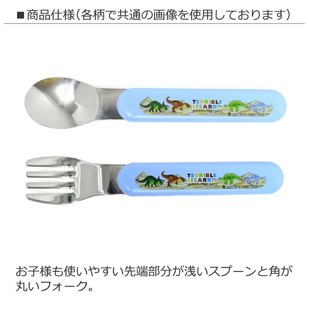 くぼみが浅く、口に運びやすいスプーン。先端部分が丸く、口の中を傷つけないフォークは小さなキッズも使いやすいアイテムです。