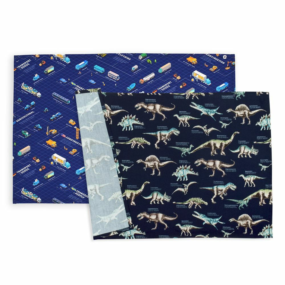 ランチョンマット(40cm×60cm) 柄違い2枚セット 恐竜・クルマセット