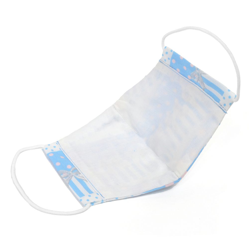 子ども マスク 2枚セット(銀イオン抗菌ガーゼ) ポルカドットとレースリボンに魅せられて(ライトブルー)
