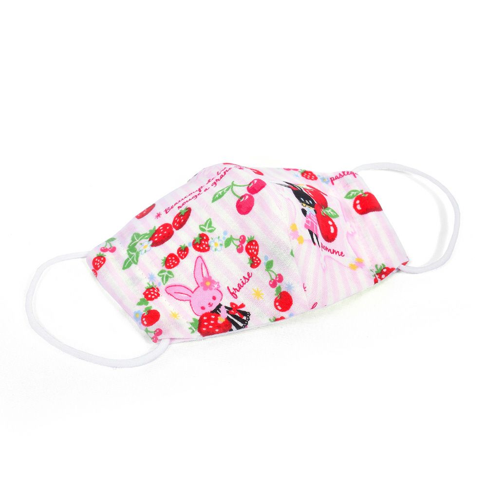 幼児用 マスク 2枚セット(銀イオン抗菌ガーゼ) うさちゃんのスウィートベリーガーデンピンクストライプ