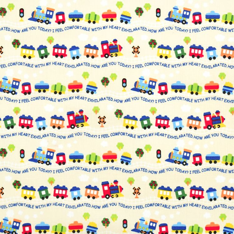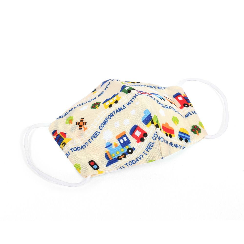 幼児用 マスク 2枚セット(銀イオン抗菌ガーゼ) カラフル列車で行こう(アイボリー)
