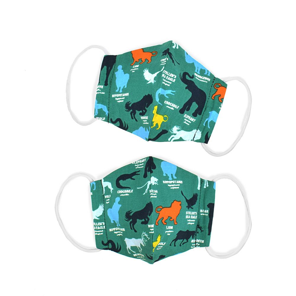幼児用 マスク 2枚セット(銀イオン抗菌ガーゼ) アニマルシルエット百科事典