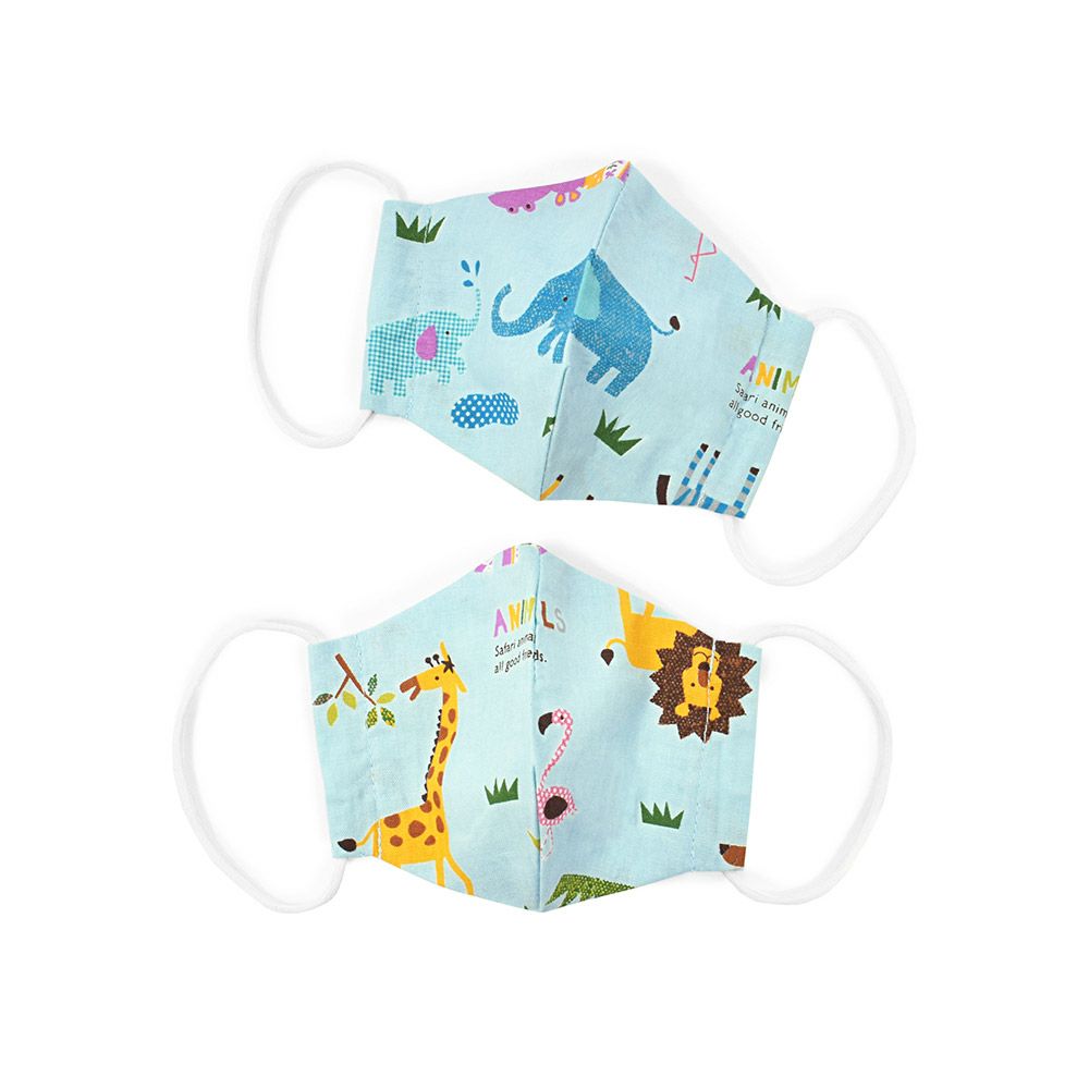 幼児用 マスク 2枚セット(銀イオン抗菌ガーゼ) サバンナ横断どうぶつ大行進(ライトブルー)