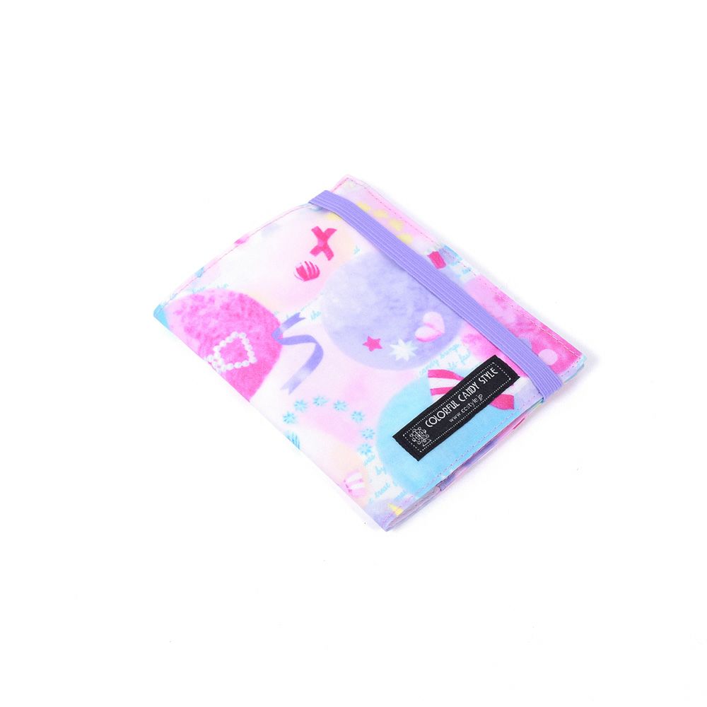 表地は撥水加工のラミネート素材なので汚れに強く、お手入れも簡単。半分に折りたたんだ際は、一体型のゴムで開かないように留められるので、接触面を守ることができます。
