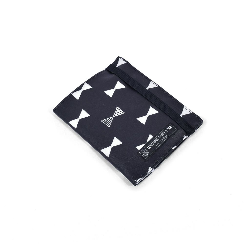 表地は撥水加工のラミネート素材なので汚れに強く、お手入れも簡単。半分に折りたたんだ際は、一体型のゴムで開かないように留められるので、接触面を守ることができます。