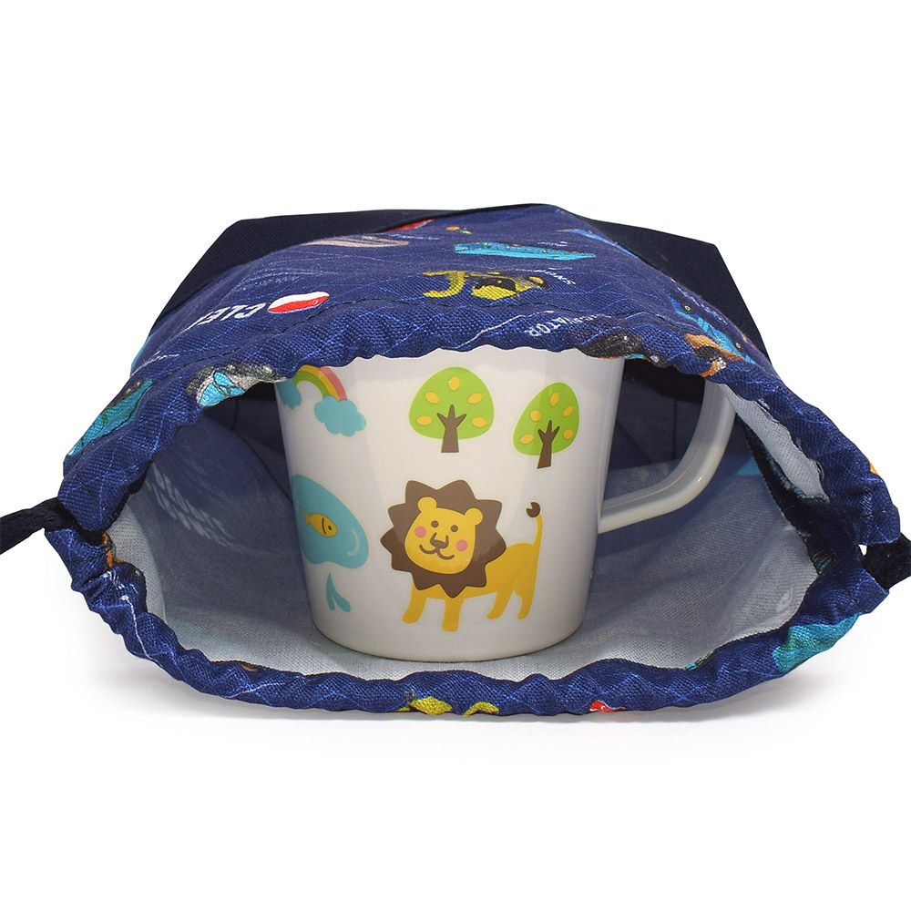 底布が付いて高級感と耐久性をアップ。巾着袋を引きずりがちなお子様でも安心です。