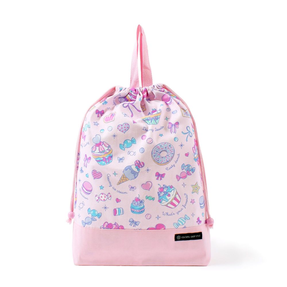 体操服や上履きなどが入る巾着袋。持ち手付きなので、持ち運びや収納にも便利。衣類を楽に出し入れできるゆったりサイズ。お洋服をたたむのが少し苦手なお子様にも最適です。