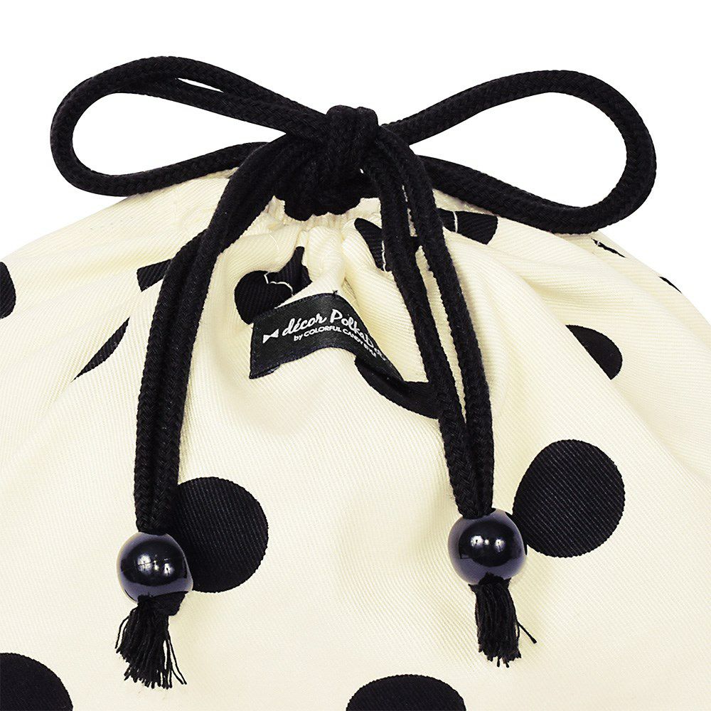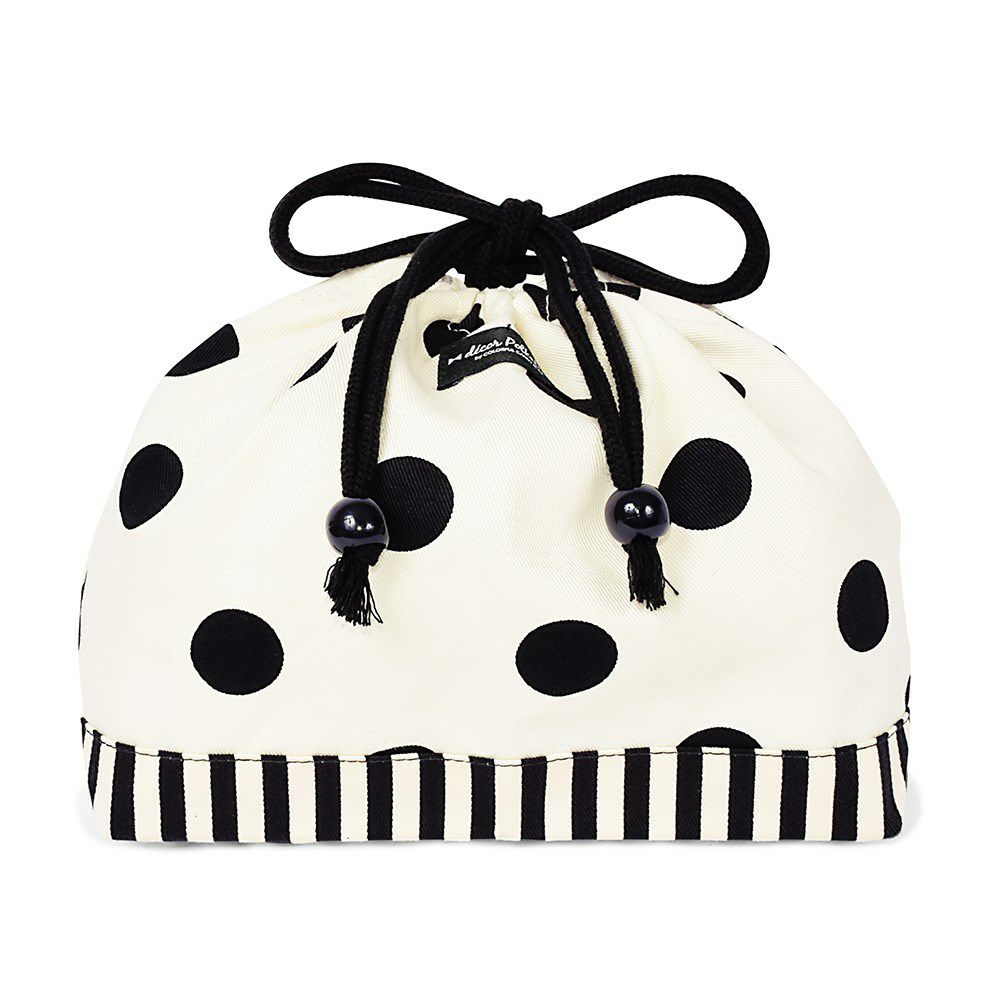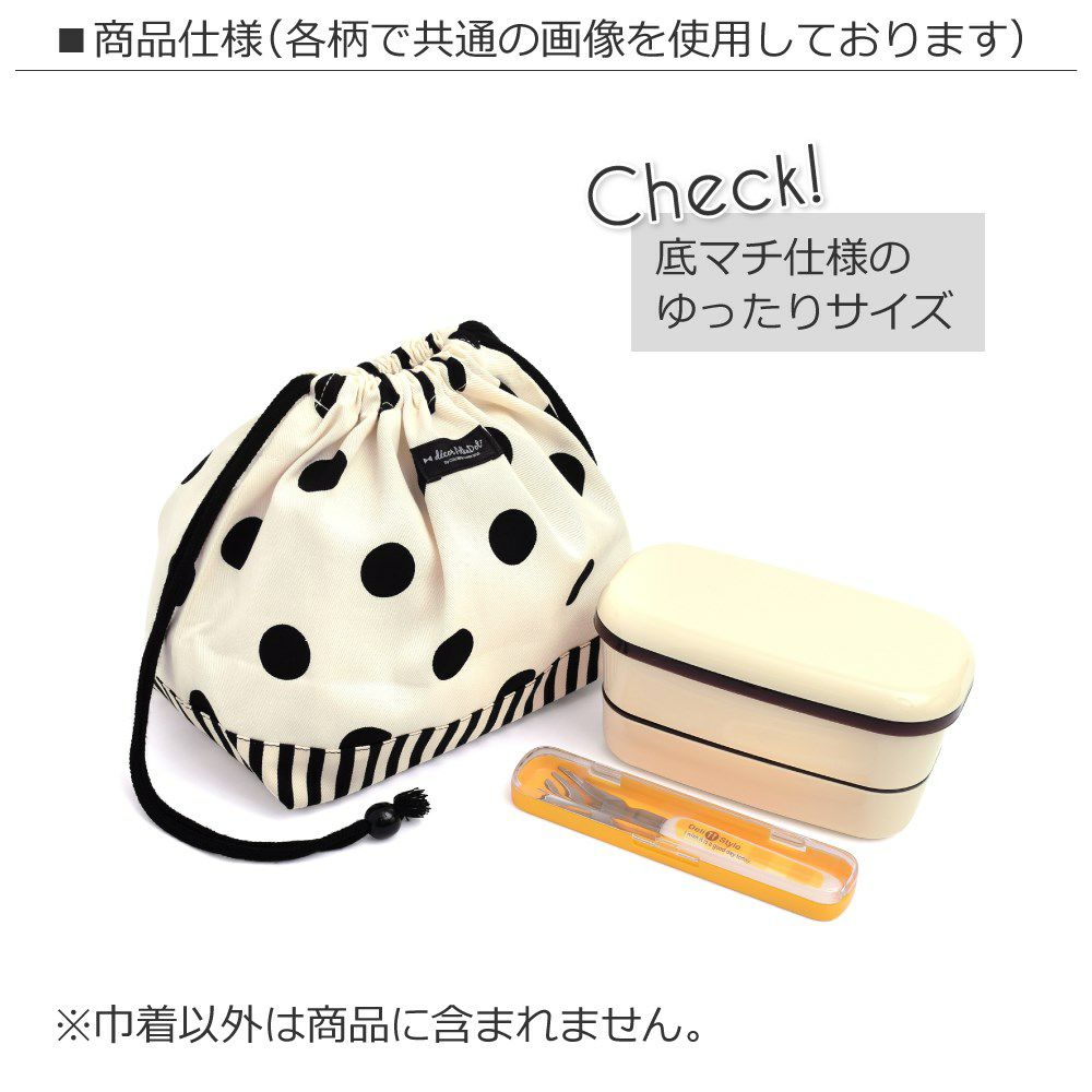 decor PolkaDotのお弁当袋は、モノトーン配色とドット・ストライプ模様がシックなツートーンデザインです。
