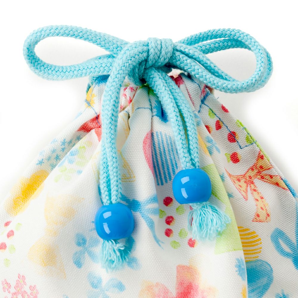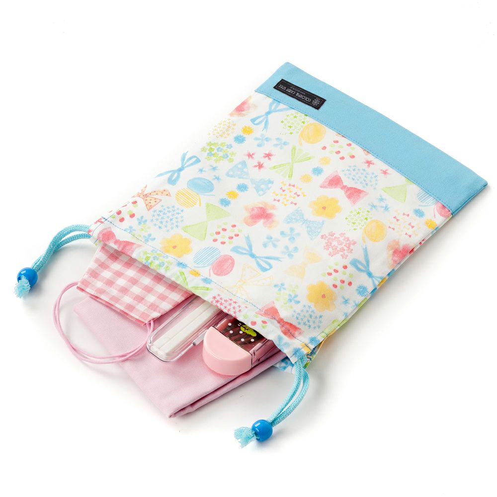 巾着 中 マチ無し給食袋 フラワービーズとふんわりパステルリボン