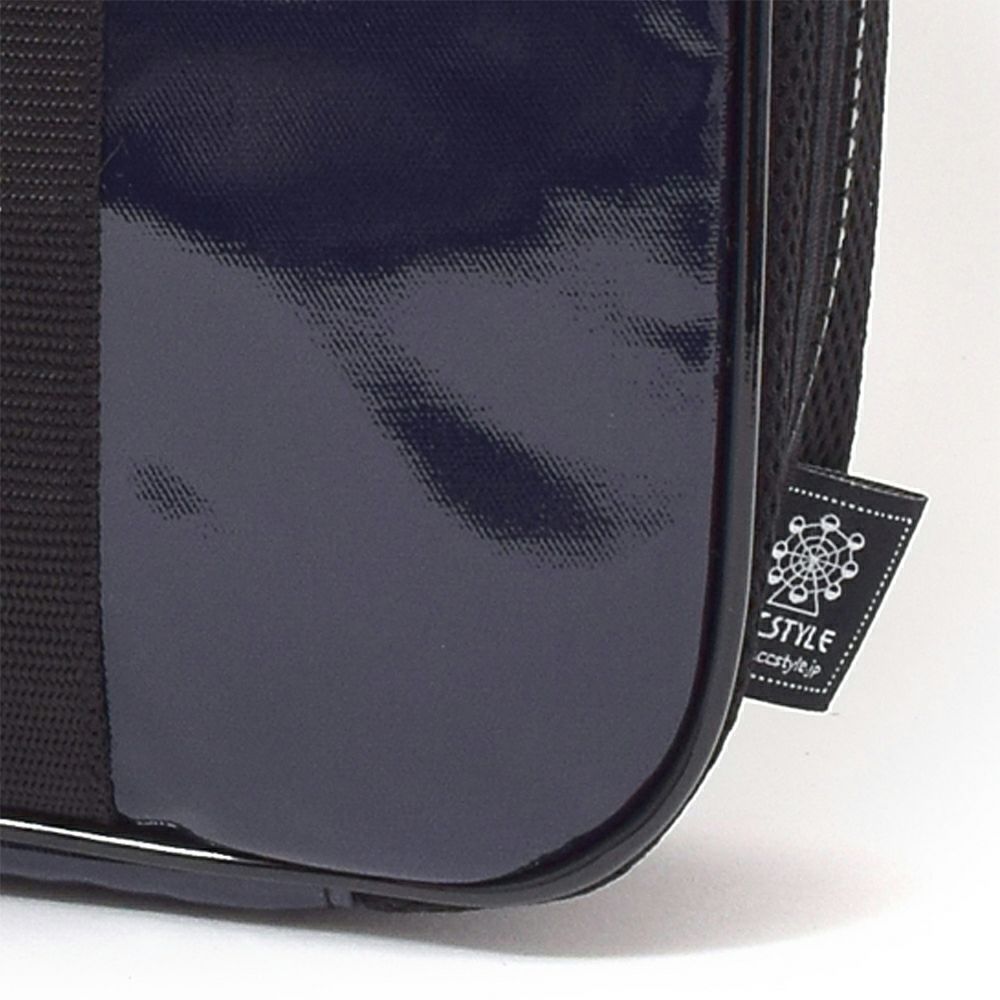 バッグの表面は墨汚れが付きにくいビニールコーティング。強度・耐久性に優れているので使い続けるうちに硬化したり表面が割れる心配がなく長くご愛用いただけます。サイドは全面クッション性のあるメッシュ生地。通気性にも優れています。