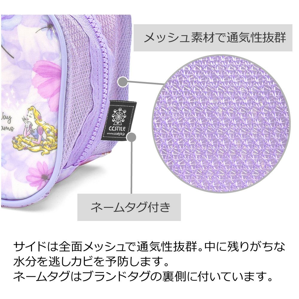 サイドは全面メッシュ生地なので通気性も抜群。中に残りがちな水分を逃しカビを予防します。内側は撥水生地を使用しています。