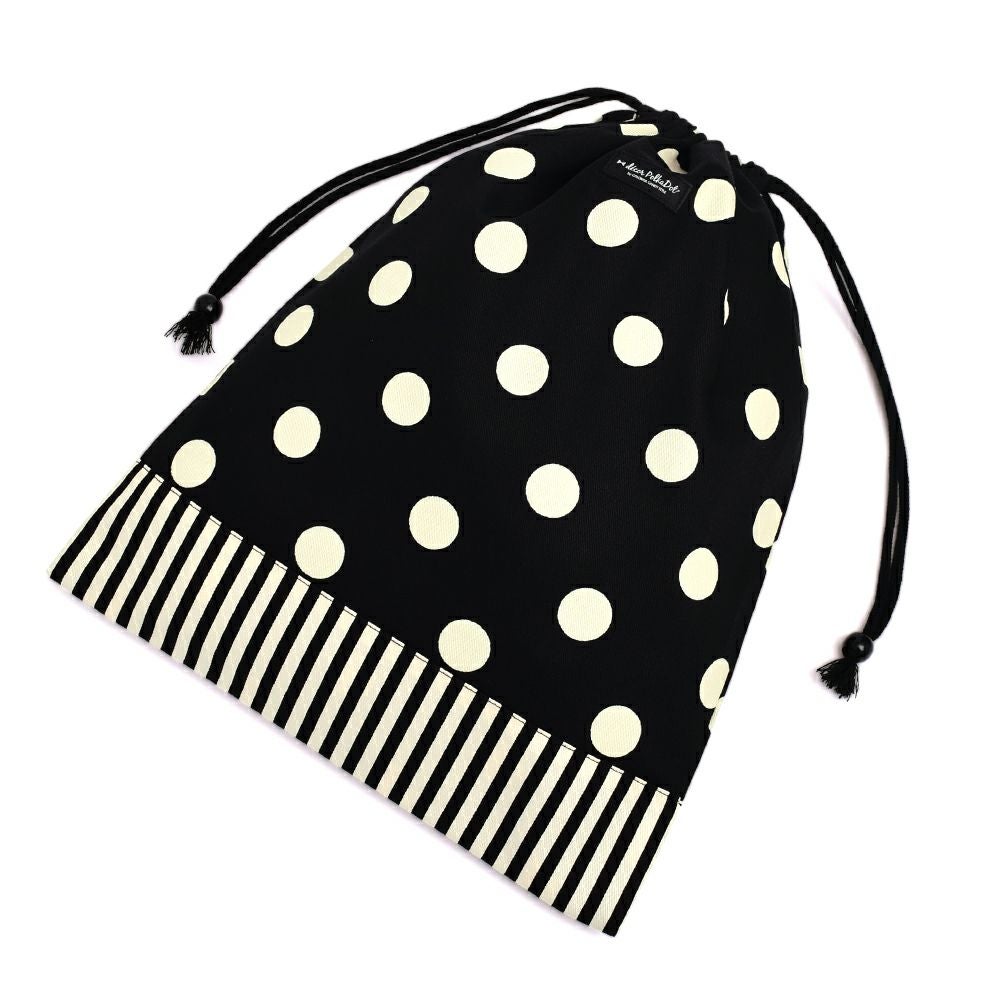 他の画像を見る decor PolkaDot 巾着 中 マチ有りお弁当袋 polka dot large(twill・white)xnarrow stripe(twill・black) 当店特別価格 ¥ 1,580 税込 カートに入れる お気に入りに追加する
