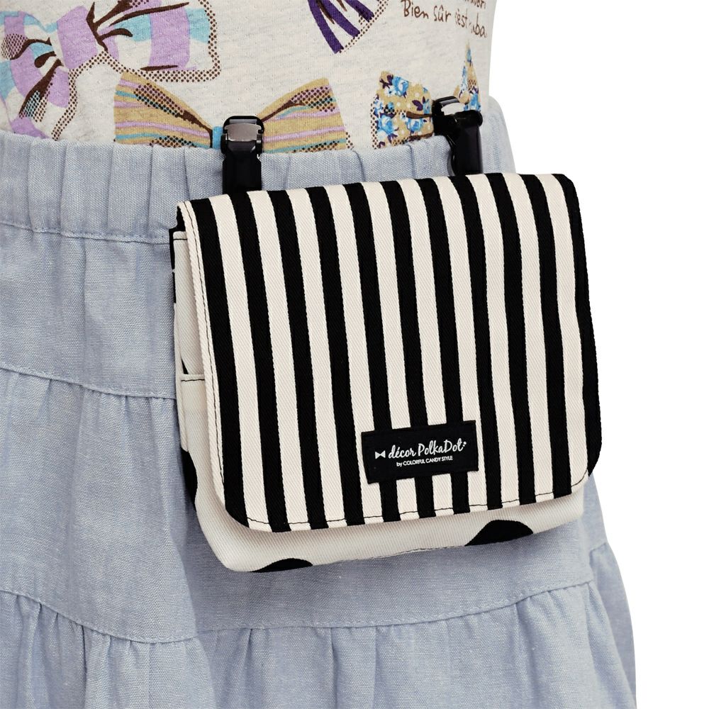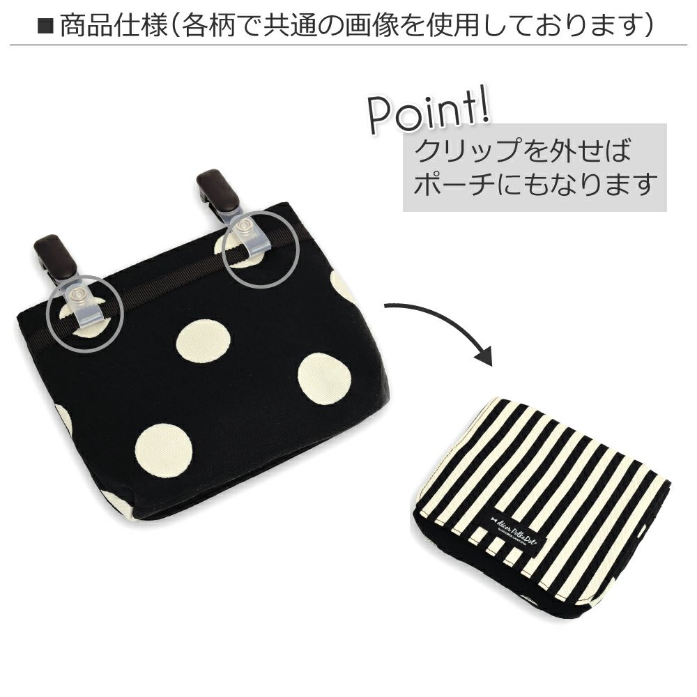 decor PolkaDotの移動ポケットは、モノトーン配色とドット・ストライプ模様がシックなツートーンデザインです。