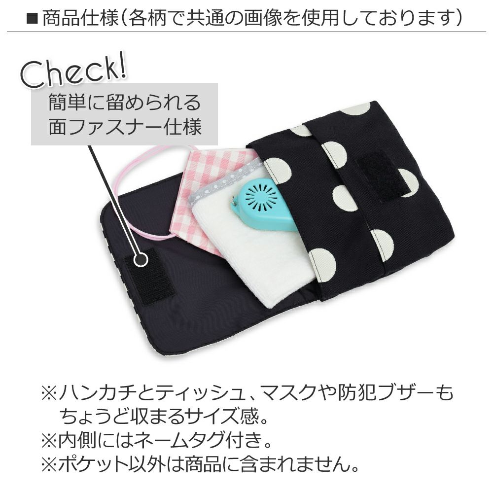 ポケットがない服に簡単に取り付けられ、小さな子どもでもハンカチなどをスムーズに出し入れできます。