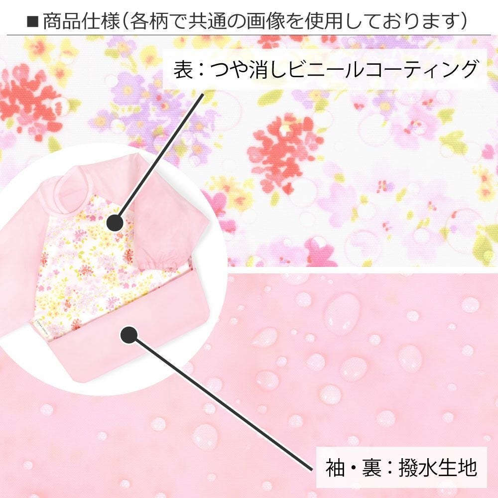 赤ちゃんとお洋服を汚れからしっかり守ってくれる長袖タイプ。裾をくるっと折り返せばポケットになり、食事中の食べこぼしをキャッチします。