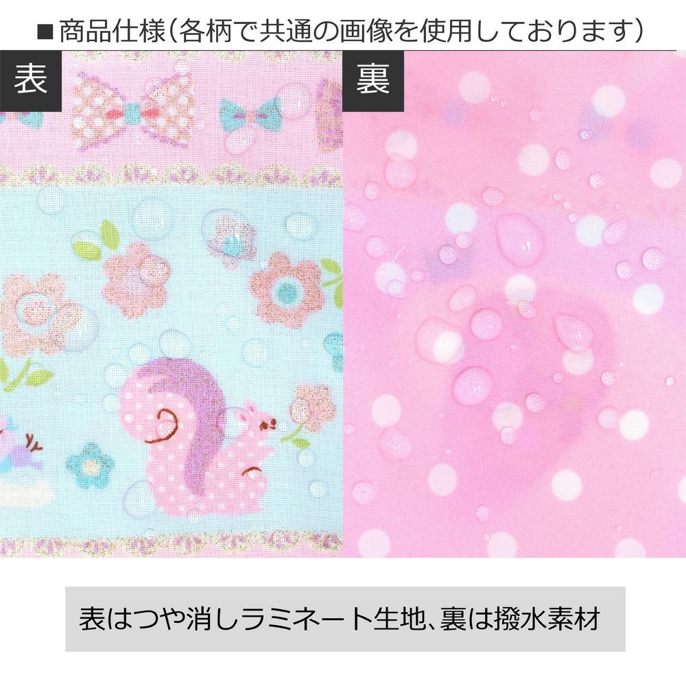 表は薄手でしなやかな、つや消しラミネート生地、裏は撥水素材を使用。水を弾いて汚れがつきにくく、サッと拭き取るだけなので、お手入れも簡単です。