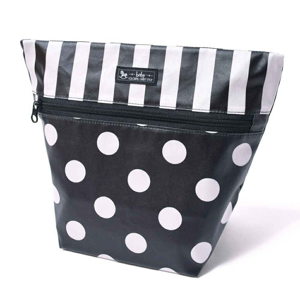 アウトレット 消臭おむつポーチ ファスナータイプ polka dot large(broadcloth・black)